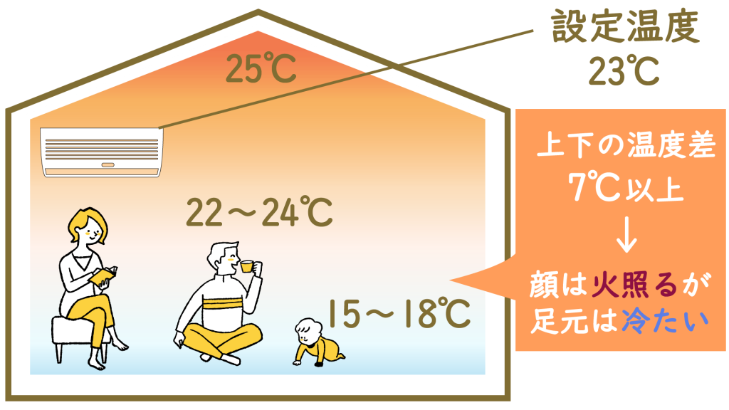 上下の温度差(足元が冷える)