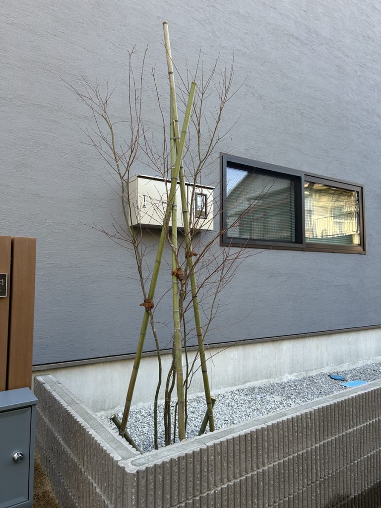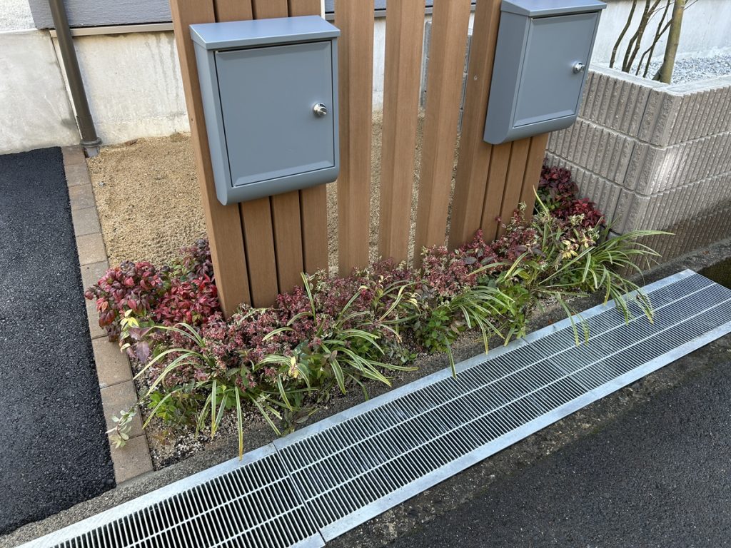 そして、南側の植栽と門柱周りの植栽も施工完了です。